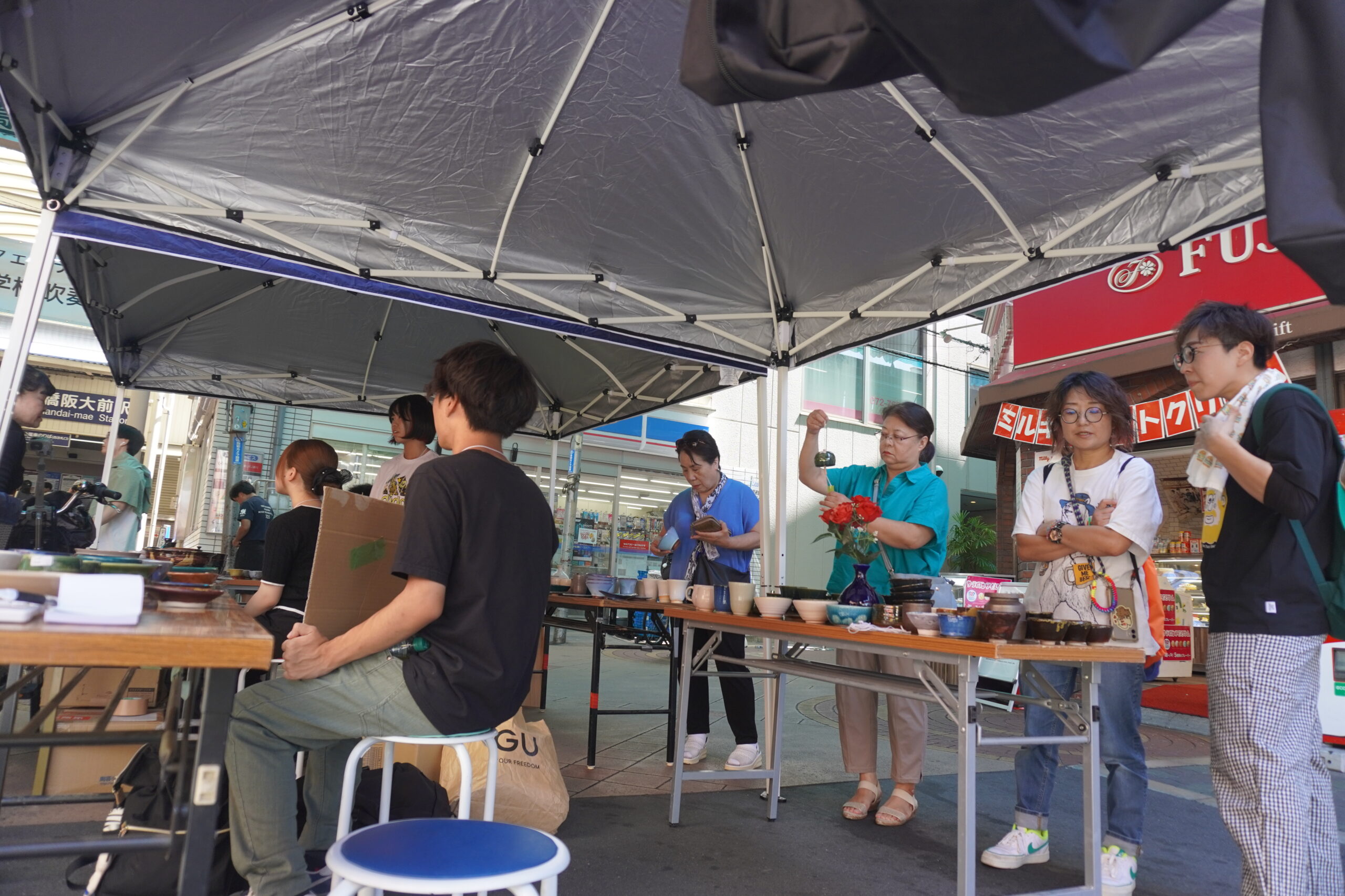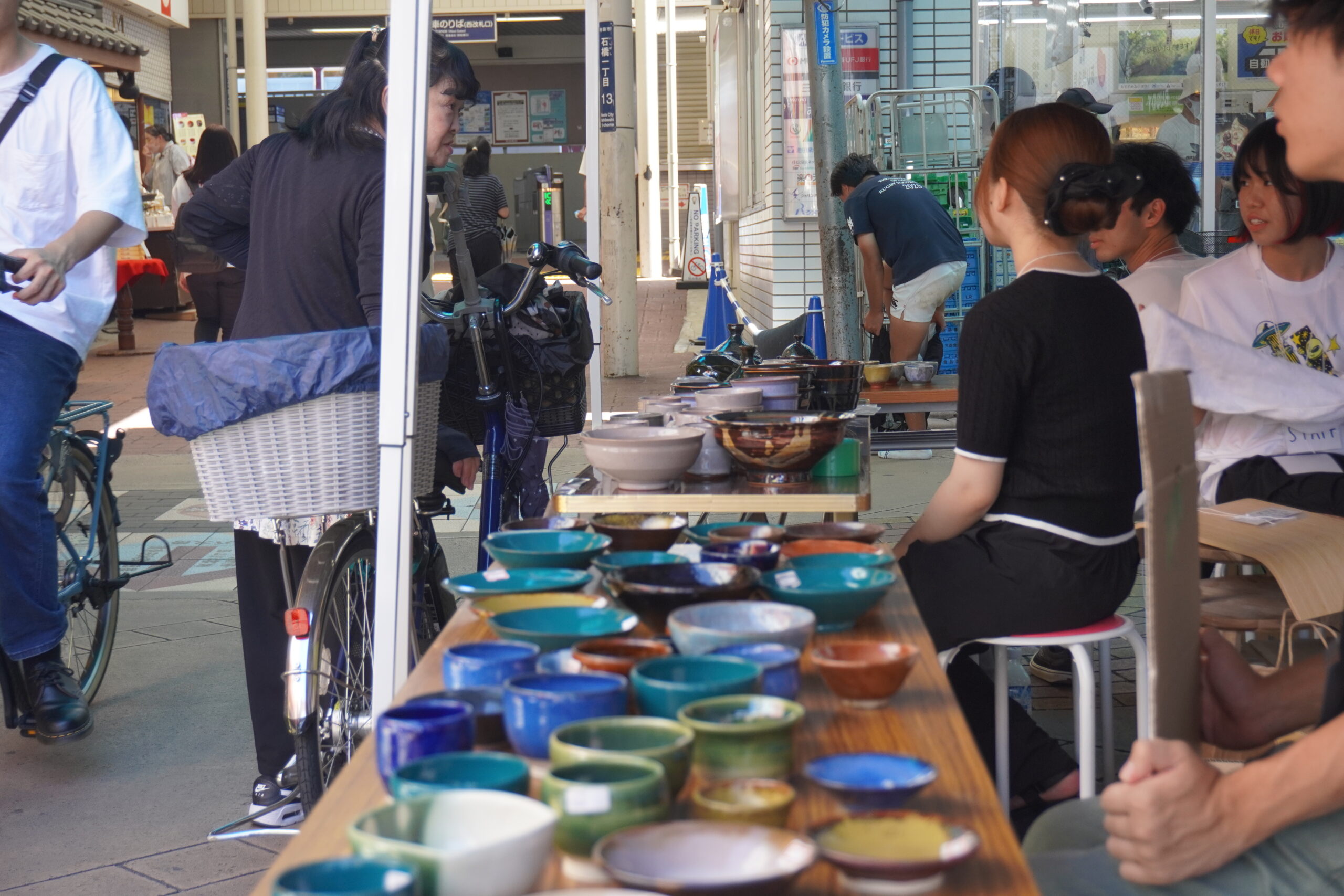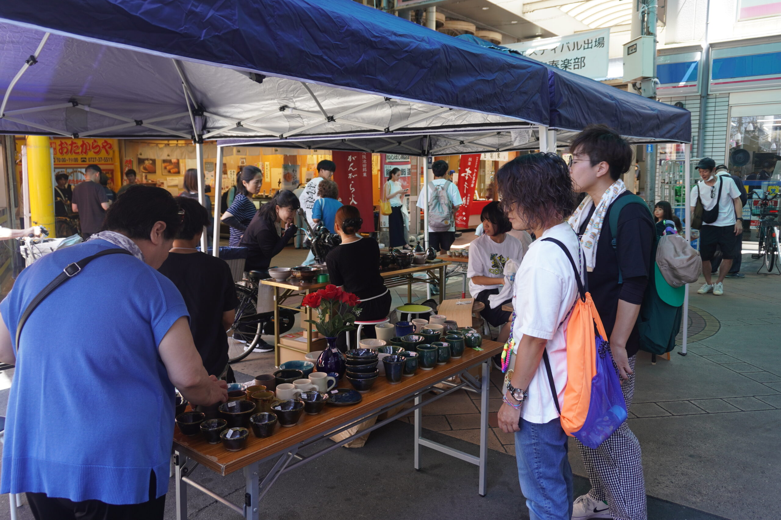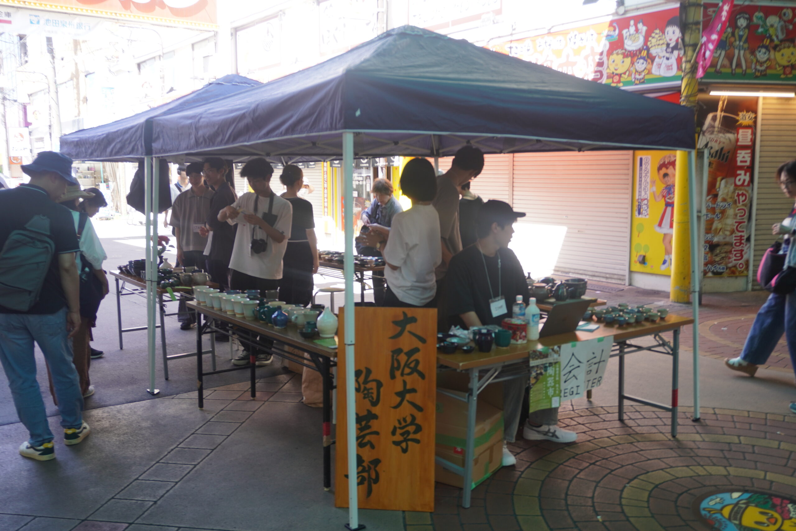 たくさんの地域の方が足を止め、阪大生の説明を聞きながら陶器を選んでいました。