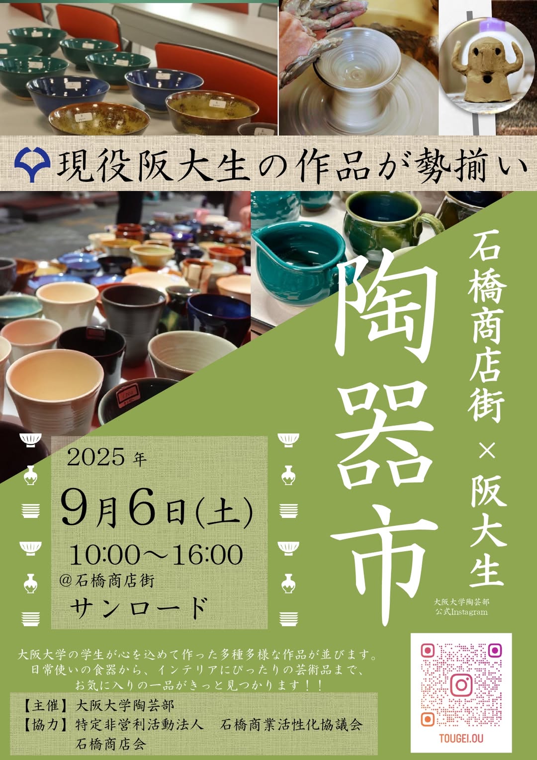 阪大陶芸部 陶器市/陶芸部の阪大生の作品が並びます!