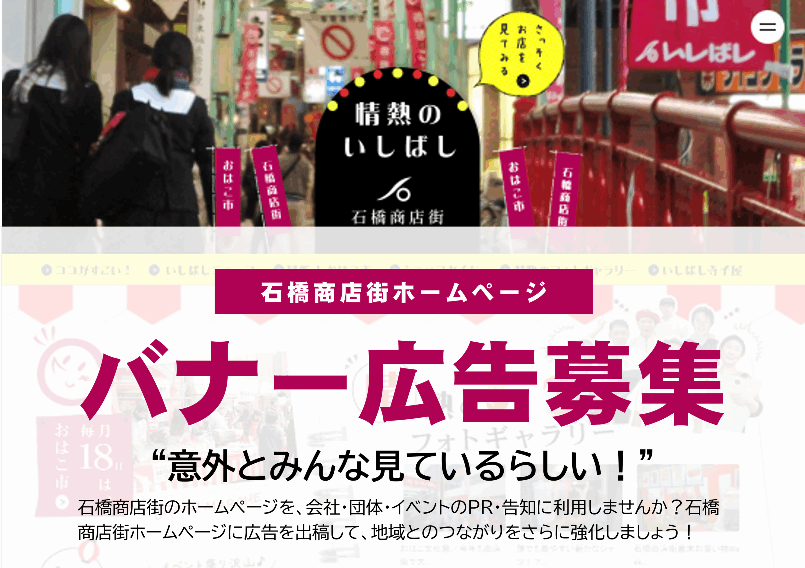 石橋商店街のホームページに広告を掲載し、地域とのつながりをさらに深めてみませんか?